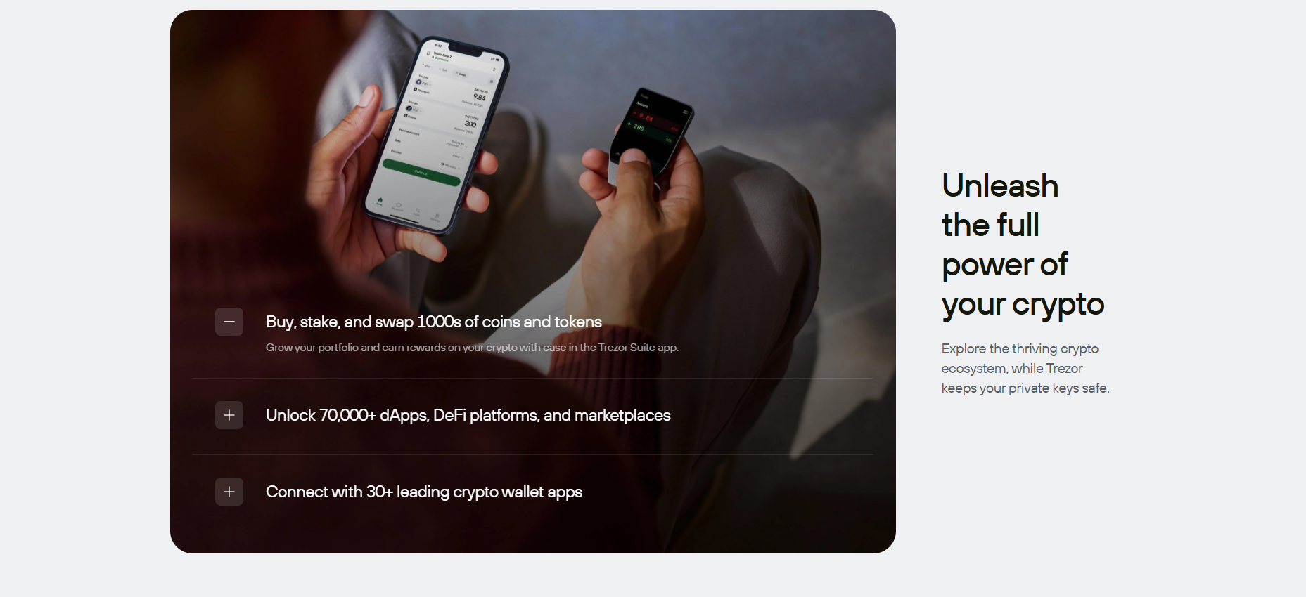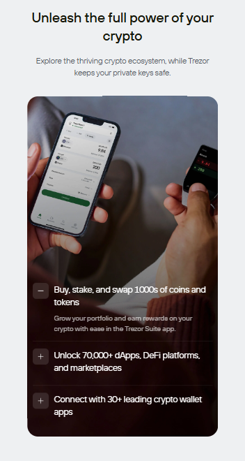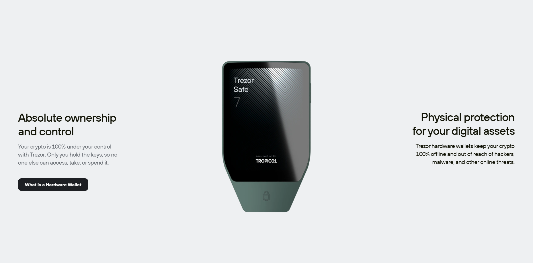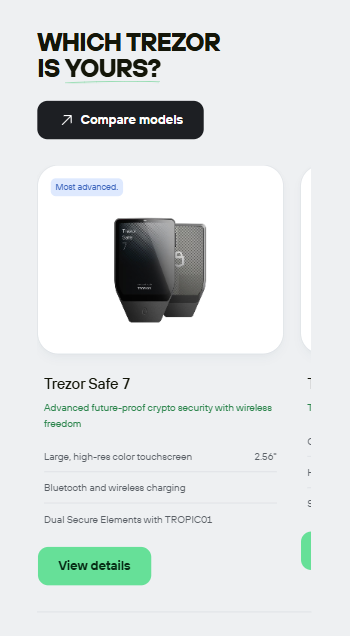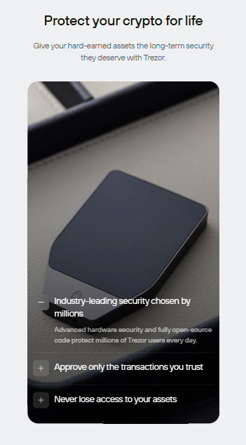 Trezor is built with open source security, with transparent code vetted by experts around the world. Unlike wallets or exchanges, Trezor offers true cold storage and offline keys that never leave your device.Features like optional password protection, phishing protection, community verification, and Tropic01 – the world’s first auditable cryptographic protocol – provide next-generation security designed for privacy. With the new Trezor Safe 7, a hardware wallet with quantum-ready security, it gives cryptocurrency owners a solid foundation for the security and freedom to control their assets far into the future.